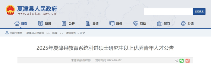 2025年夏津县教育系统引进硕士研究生以上优秀青年人才公告