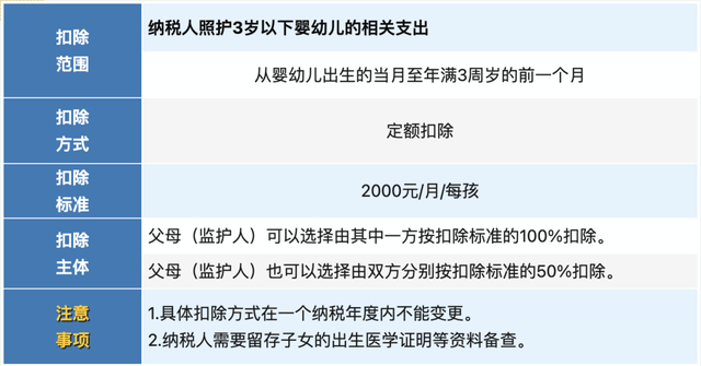 (三)建立生育补贴等制度。制定生育补贴制度实施方案和管理规范,指导地方做好政策衔接,积极稳妥抓好落实。落实好3岁以下婴幼儿照护、子女教育个人所得税专项附加扣除政策。加大个人所得税抵扣力度。