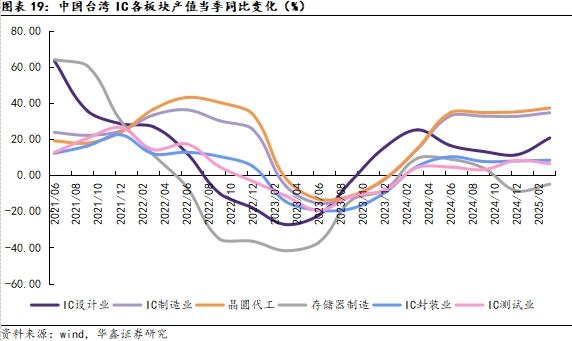 我们可以通过中国台湾IC产值同比增速,将电子各板块合在一起观察: