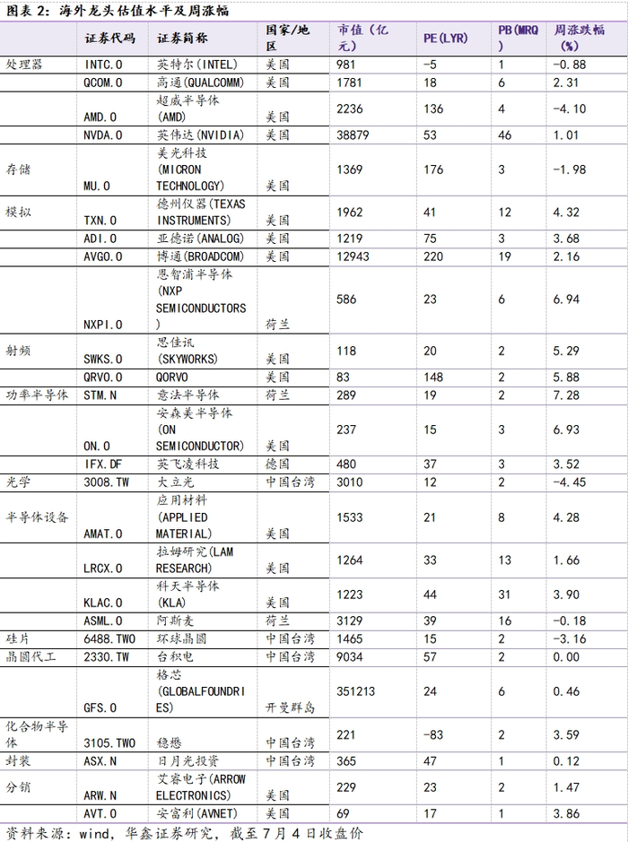 6月30日-7月4日当周,海外龙头呈上涨态势。其中,意法半导体领涨,涨幅为7.28%。
