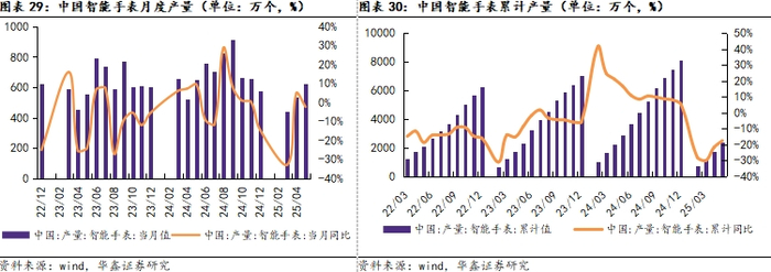 中国智能手表进入 2024 年之后出现反弹,第一季度智能手表累计产量同比增长 24.7%,打破近两年的持 续下滑趋势,第二季度智能手表累计产量同比增长 10.90%,第三季度智能手表累计产量同比增长9.8%,第四季度智能手表累计产量同比增长5.4%,增幅有所缩窄。2025年,第一季度智能手表累计产量同比下降30.10%。我们认为随着生成式 AI 与终端硬件的结合,智能手表未来有望集成更多 AI 功能,从而为市场增长开辟新途径。