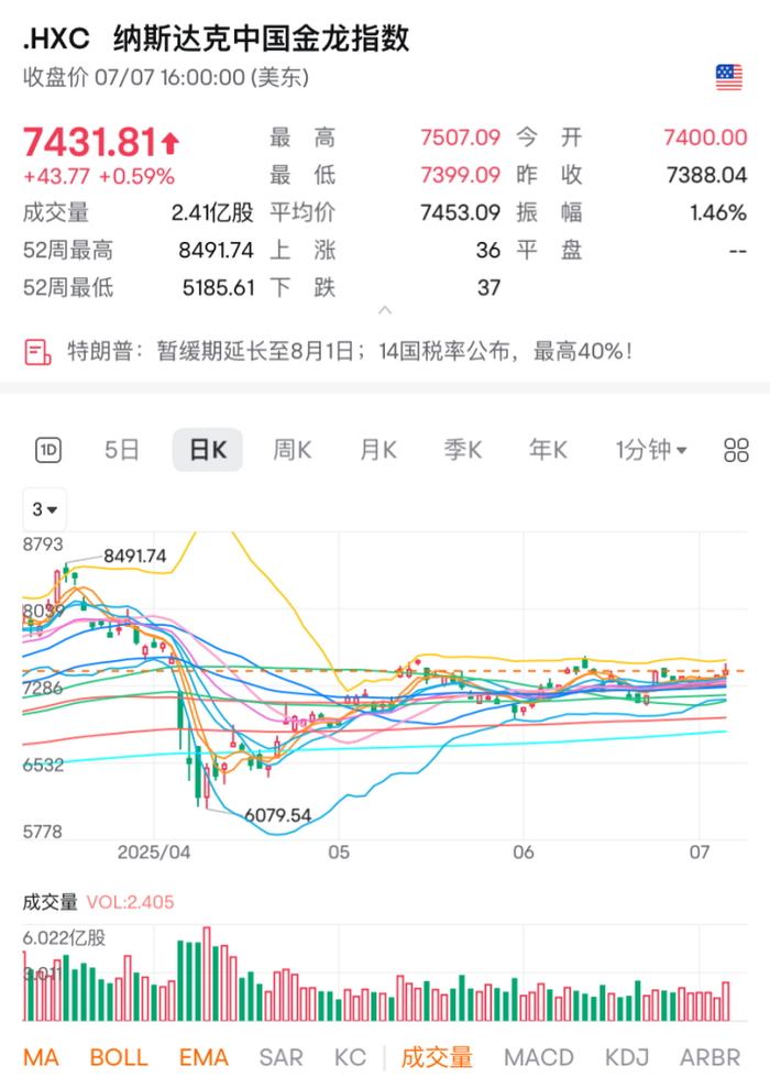 当地时间7月7日,美股三大指数全线下跌。截至收盘,道指、纳指均跌近1%。