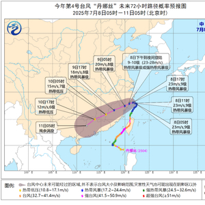 昨日,受“丹娜丝”影响,台湾岛南部和西北部、浙江沿海等地出现暴雨或大暴雨,浙江台州局地特大暴雨(260毫米);台湾岛沿海、浙江沿海、福建沿海等地出现6~9级阵风,局地10~11级。中央气象台今晨同时发布台风蓝色预警和暴雨黄色预警。预计台风“丹娜丝”将于今天(8日)下午到夜间在浙江台州至福建宁德一带沿海再次登陆,登陆时强度为热带风暴级或强热带风暴级(9~10级)。