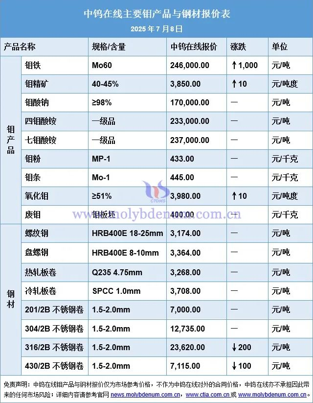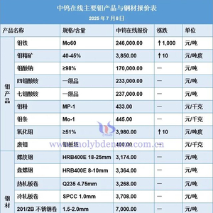 目前,业者更为关注的是,这一轮价格上涨的幅度能否企及6月份创下的年内最高点。据中钨在线了解,6月钼精矿最高价约为3,870元/吨度,钼铁最高价约为250,000元/吨,氧化钼最高价约为3,960元/吨度,七钼酸铵最高价约为239,000元/吨,钼粉最高价约为442元/千克。