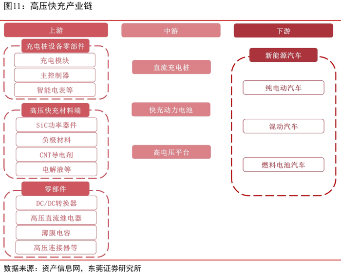 中游:直流充电桩、快充动力电池、高电压平台等;