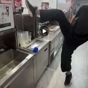 蜜雪冰城被曝员工用脚关直饮水桶,客服回应