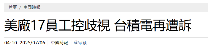 据报道,近日有17名原告对台积电提起集体诉讼,并提交了超过160页的指控。一名为台积电人力资部门工作的加州女性表示,台积电偏好台湾地区与中国大陆员工。多位原告声称,他们遭遇带有敌意的工作环境,台积电赶走美国员工,并以外籍工人取代。