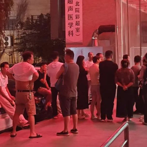 7月7日晚,在西安市中心医院住院部一楼门外,聚集着来自甘肃天水的幼儿家长,他们已经在该院接受治疗有3天时间了。