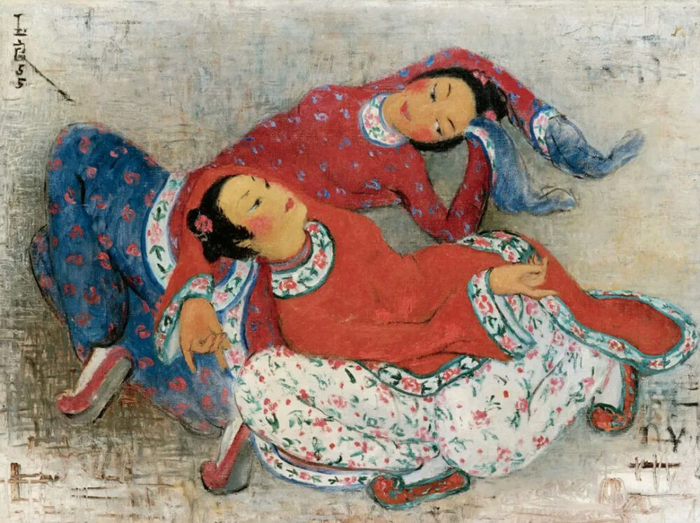 这是潘玉良 20 世纪 50 年代中后期创作的一批以中国民间妇女活动为题材的油画代表作,也是其油画作品中融合中西文化的经典之作。该作品既展现了潘玉良学习西方绘画的坚实根底,又体现了她继承民族传统的笔墨情趣,对于研究潘玉良的艺术风格演变以及中西方艺术融合具有重要的价值。