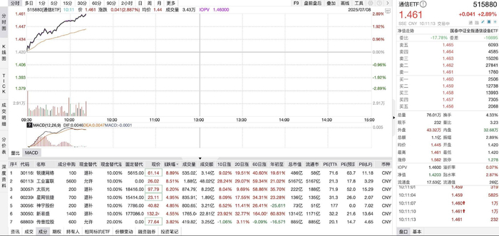 AI迎重大催化!通信ETF(515880)单日涨近3%,光通信龙头集结!