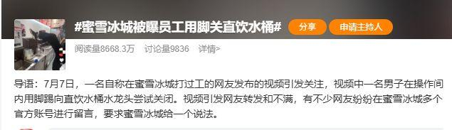 #蜜雪冰城被曝员工用脚关直饮水桶#的话题