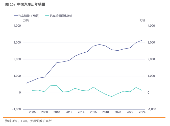 受益汽车产销量和电子化水平提高,汽车线束行业规模持续扩张。2024年中国汽车销量达到3142.7万辆,同比增长4.6%。销量增长以乘用车为主,2024年乘用车销量达到2755.1万辆,同比增长5.91%。由于新能源车以电池为主要能源,预计将产生更多高压线束的需求。新能源汽车销量快速增加,叠加新能源车的占比不断提升,将带动汽车线束行业快速增长。据中线网预测,预计2025年中国汽车线束市场规模有望突破1200亿元。其中新能源车用线束占比预计从2019年的4.8%提升至2025年的62.5%,成为最大增长引擎。