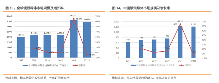 镀银铜市场规模迅速扩大。根据QYResearch数据,全球镀银导体市场规模由2017年的19.85亿元增长至2022年的34.69亿元,增长率达到74.8%。尽管中国导体产业起步较晚,随着国内航空航天、家电工业、电子信息、通信行业的高速发展,特种导体生产企业在近几年迅速扩大生产规模,新的企业不断产生,新的特种导体格局在中国基本形成,行业内涌现出一批规模较大、技术实力雄厚的企业,逐步成长为行业的领头羊。根据QYResearch数据,中国镀银导体市场规模由2017年的6.24亿元增长至2022年的12.06亿元,增长率93.3%。