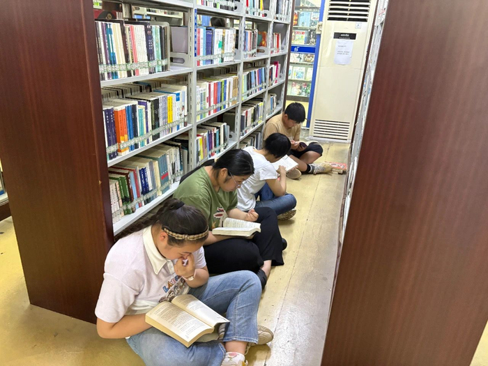 记者实地走访看到,上午10点左右,蚌埠市图书馆座无空席,成为市民消暑学习的好去处。在借阅区内,有的市民伏案阅读,有的执笔书写,有的累了就趴在位置上小憩,书架前也都是正在看书的市民,学习氛围十分浓厚。四楼少儿馆里,小读者们或与家长共读绘本,或独自安静阅读,或与伙伴轻声探讨。