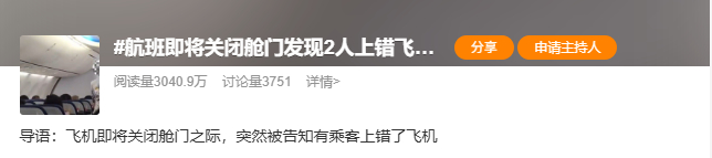 #航班即将关闭舱门发现2人上错飞机#的话题