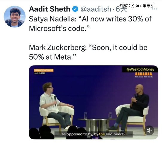 其中纳德拉表示,现在微软30%的代码都是AI写的。