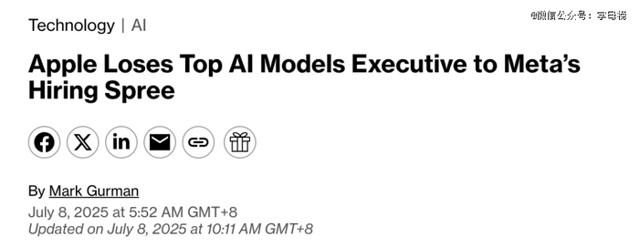 就在刚刚,彭博社爆料称苹果的一员大将被Meta挖走。