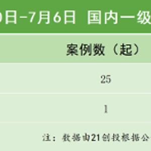 21创投不完全统计,6月30日至7月6日,报告日期内国内一级市场发生融资事件36起,其中,有25笔融资披露了融资金额和币种信息,总规模约合人民币72.8亿元。