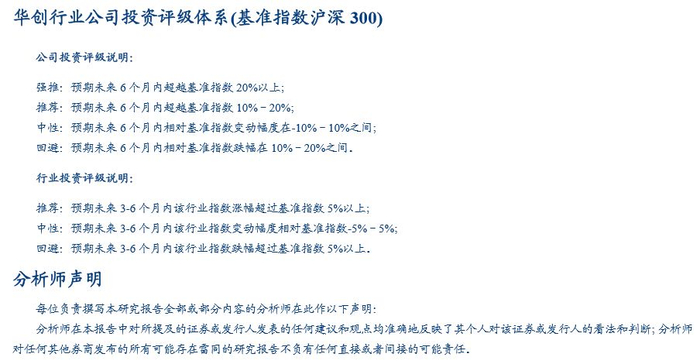 本资料摘编自华创证券研究所已经发布的研究报告,若对报告的摘编产生歧义,应以报告发布当日的完整内容为准。须注意的是,本资料仅代表报告发布当日的判断,相关的分析意见及推测可能会根据华创证券研究所后续发布的研究报告在不发出通知的情形下做出更改。华创证券的其他业务部门或附属机构可能独立做出与本资料的意见或建议不一致的投资决策。本资料所指的证券或金融工具的价格、价值及收入可涨可跌,以往的表现不应作为日后表现的显示及担保。本资料仅供订阅人参考之用,不是或不应被视为出售、购买或认购证券或其它金融工具的要约或要约邀请。订阅人不应单纯依靠本资料的信息而取代自身的独立判断,应自主作出投资决策并自行承担投资风险。华创证券不对使用本资料涉及的信息所产生的任何直接或间接损失或与此有关的其他损失承担任何责任。