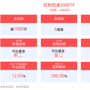 规模方面,红利低波100ETF近1周规模增长401.41万元,实现显著增长,新增规模位居可比基金2/5。