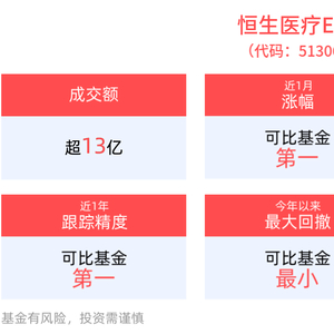 恒生医疗ETF紧密跟踪恒生医疗保健指数,恒生医疗保健指数提供一项市场参考指标,反映在香港上市、主要经营医疗保健业务证券的整体表现。