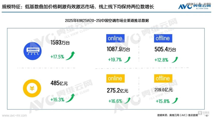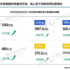 根据奥维云网推总数据显示,2025年618期间,空调品类全渠道实现零售额规模达485亿元,同比增长16.3%。在多种政策性因素的推动下,空调市场的热卖,也让市场的竞争加剧起来。