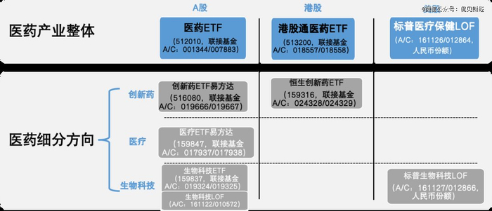 例如,医药ETF(512010,联接基金A/C:001344/007883)聚焦A股医药卫生行业龙头,全面覆盖化学制药、医疗服务、医疗器械等未来健康产业细分环节,目前产品规模超200亿元、位居同标的ETF*;港股通医药ETF(513200,联接基金A/C:018557/018558)则聚焦港股通范围内的医药卫生行业龙头,包含创新药、医疗器械、医疗服务等关键领域,产品最新规模超20亿元、在同标的ETF中居首。
