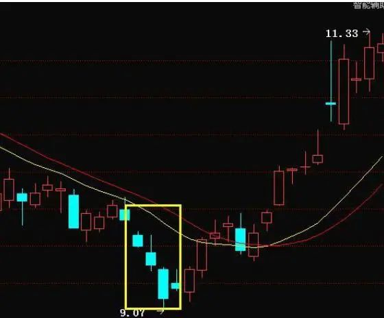 “三空阴线”,这种K线组合形态虽然从表面看显得跌势凌厉,但是过度下跌是对做空能量的极大消耗,当空头能量消耗尽时,股价极易出现见底行情。