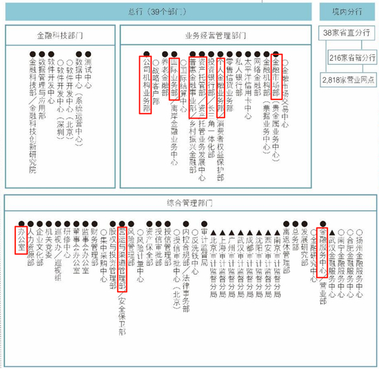 截至2024年末,交通银行总行有39个一级部门,另有7个一级部门内设的部门级机构(6个地方审计监督分局和武汉金融服务中心),此外还有14个一级部门内设的副部门级机构。