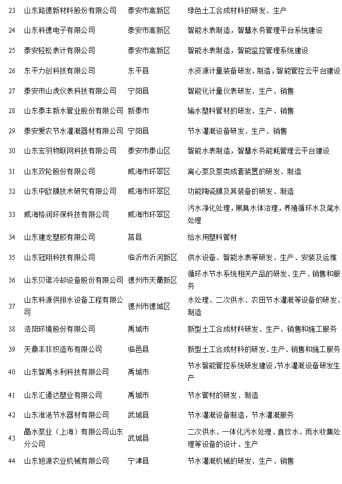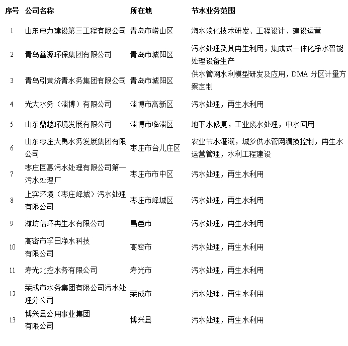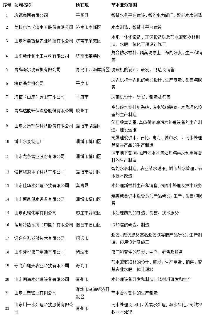 附:山东省第二批节水产业重点企业名单