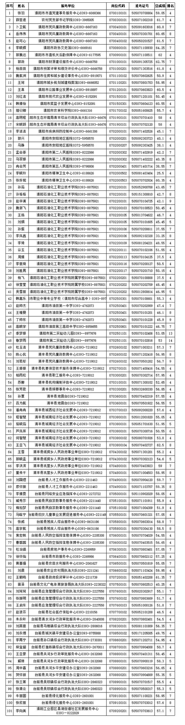 101人!濮阳市事业单位公开招聘联考顺延面试确认人员名单→