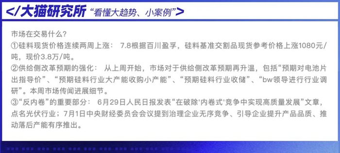 国内头部光伏企业7月集体减产30%,唐山的钢铁企业7月4日到15日,烧结机限产30%;水泥协会已经发了反内卷的指导文件,养猪企业也接到通知,要暂停能繁母猪扩产,出栏体重要控制在120公斤。
