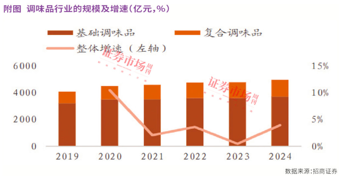 招商证券表示,2019年—2024年行业整体复合增速4.1%,其中基础调味品复合增速2.9%,复合调味料复合增速8.1%。短期看二季度餐饮需求仍有压力,同时也属于调味品相对淡季,企业以调整为主,二季度业绩预计有所改善,但整体比预期增长速度略慢。