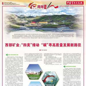 近日,中国有色金属报40周年特刊以《西部矿业:“四美”绿动 “碳”寻高质量发展新路径》为题,从“山美、水美、产业美、创新美”四个方面切入,专版报道公司以“绿”为底推动高质量发展的生动实践。