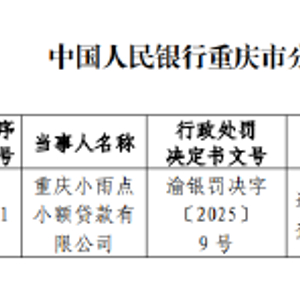 重庆小雨点小额贷款被罚249.1万元:违反信用信息采集、提供、查询相关管理规定