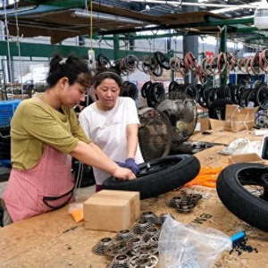 7月7日,在安徽省蚌埠市五河县经济开发区自行车产业园的生产车间里,员工们正在赶制一批出口海外的订单产品。连日来,该产业园内企业开足马力加紧生产,保障外贸订单按进度完成。该产业园创建于2016年,已入驻15家自行车上下游企业,涵盖自行车、儿童车、折叠车、三轮车、电动自行车等整车组装以及零配件生产,产品主要销往欧美、中东地区,年产值超4.5亿元人民币。李向前 摄