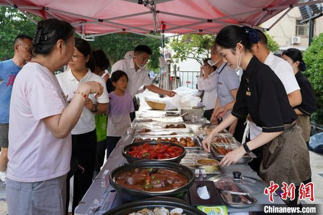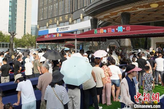 连日来,河南郑州多家星级酒店开启“摆摊模式”,以“星级手艺、街头价格”撬动消费新市场,引来不少市民排队尝鲜。图为星级酒店外摆地摊菜品吸引众多市民排队选购。 赵梦阳 摄