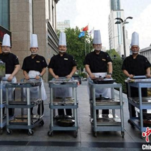 河南郑州星级酒店“摆摊潮” 市民排队尝鲜