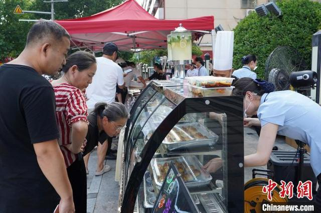 连日来,河南郑州多家星级酒店开启“摆摊模式”,以“星级手艺、街头价格”撬动消费新市场,引来不少市民排队尝鲜。图为消费者挑选菜品。 赵梦阳 摄