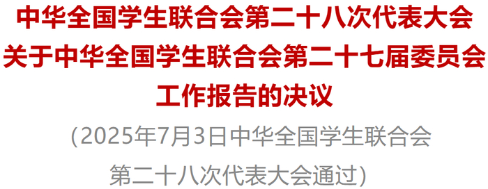 中华全国学生联合会第二十八次代表大会关于中华全国学生联合会第二十七届委员会工作报告的决议