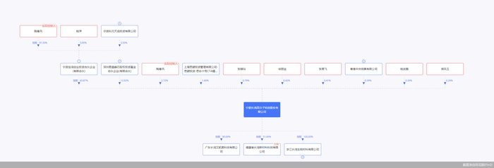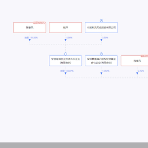 股权关系方面,同花顺iFinD资料显示,陶春风直接持有长鸿高科2.72%股权,其旗下企业宁波定鸿创业投资合伙企业(有限合伙)(以下简称“宁波定鸿”)系公司控股股东,直接持有65.87%公司股份。进一步穿透股权关系,陶春风直接持有宁波定鸿91.5%股份,同时,其旗下企业宁波科元天成投资有限公司直接持有宁波定鸿3.5%股权。