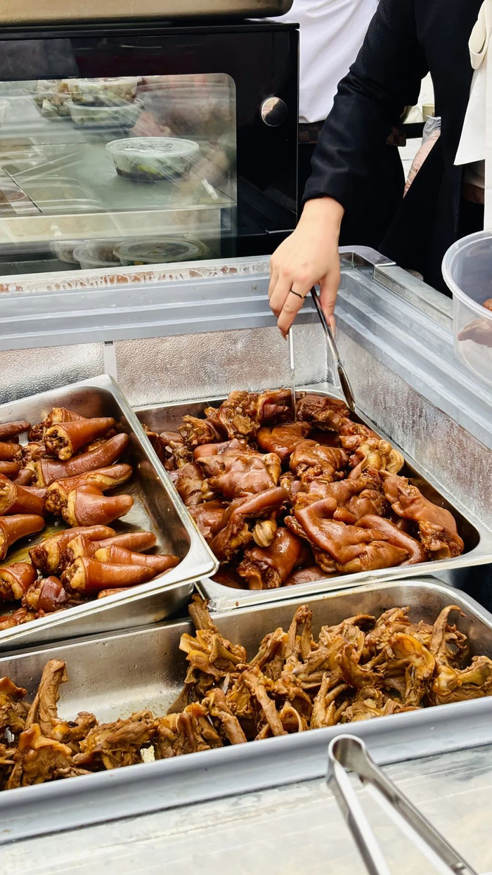 据她介绍,现场所有菜品均由酒店星级大厨团队制作,确保品质与高端宴席一致。考虑到地道亲民、普惠实惠、便捷轻食的特点,团队最终定制了适合街头快速消费场景的选品清单,包含安乡酱卤、手工凉面、烘焙面点等餐食,与主打精致宴请的酒店正餐形成互补。