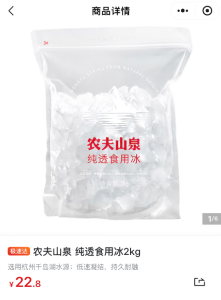 此次引发争议的产品是山姆会员商店新上架的“农夫山泉纯透食用冰”,2公斤规格售价22.8元。