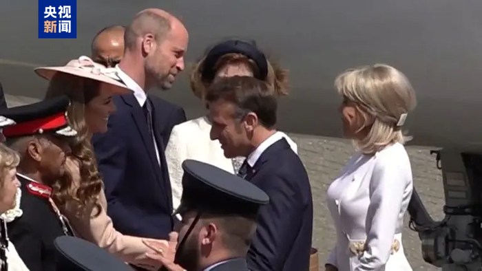 英国王储威廉及其妻子凯特王妃前往英国诺霍特皇家空军基地迎接马克龙及其夫人。