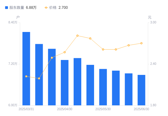 近一年(2024年6月30日至2025年6月30日),ST华闻A股股东户数从9.37万户,减低至6.88万户,降幅26.53%,区间股价上涨125.00%。