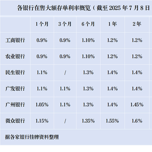 近期,南方财经记者走访了广州多家银行网点后发现,商业银行目前在售的个人大额存单利率,已跟随持续下调的存款利率,整体跌至“1字头”。