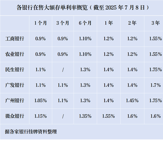 微众银行APP则显示,目前,该行2年期、3年期大额存单均额度售罄,年利率均为1.6%。