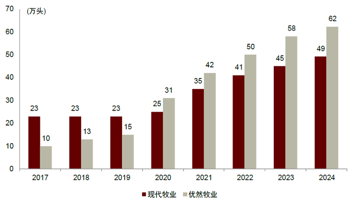 注:过去几年现代牧业和优然均有并购,上述牛群数量包含少量并购牛群数量