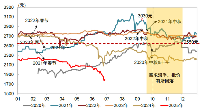 当前白酒基本面加速探底,但消费场景端压制正在边际改善,茅台批价度过压力测试点。5月中旬以来,由于餐饮消费场景受到压制,白酒动销明显放缓,同比去年呈现下滑。在需求走弱下,行业基本面加速探底,茅台批价亦较快下行,箱茅批价自5月中旬的2170元下跌至6月下旬的1870元,散瓶批价自5月中旬的2080元下跌至6月中下旬的1800元,主因受到618电商&即时零售平台补贴影响、需求偏弱且经销商信心不足、贵州国资等渠道集中出货的影响。6月中旬起茅台公司出台控价措施,包括不允许经销商向渠道及电商平台出货,各地经销商联谊会在市场上回收低价货等;6月下旬贵州国资渠道停止出货飞天,茅台批价迅速上行。我们认为茅台批价已度过年中压力最大时点,有望阶段性企稳。同时,人民网、新华社等主流媒体接连发文,对于政策执行上的“一刀切”进行纠偏,我们预计大众聚饮、宴席等消费场景有望逐步恢复,带来需求边际改善。