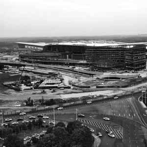 环绕航站区的道路及配套工程也在同步快速推进。连接T2航站楼的重要通道——楼前高架桥的施工现场,巨大的箱梁已架设完成7联(共9联),工人们正在大面积进行高架桥上部结构的施工。地下通道工程则已基本完工,为未来机场内部的高效交通奠定了坚实基础。